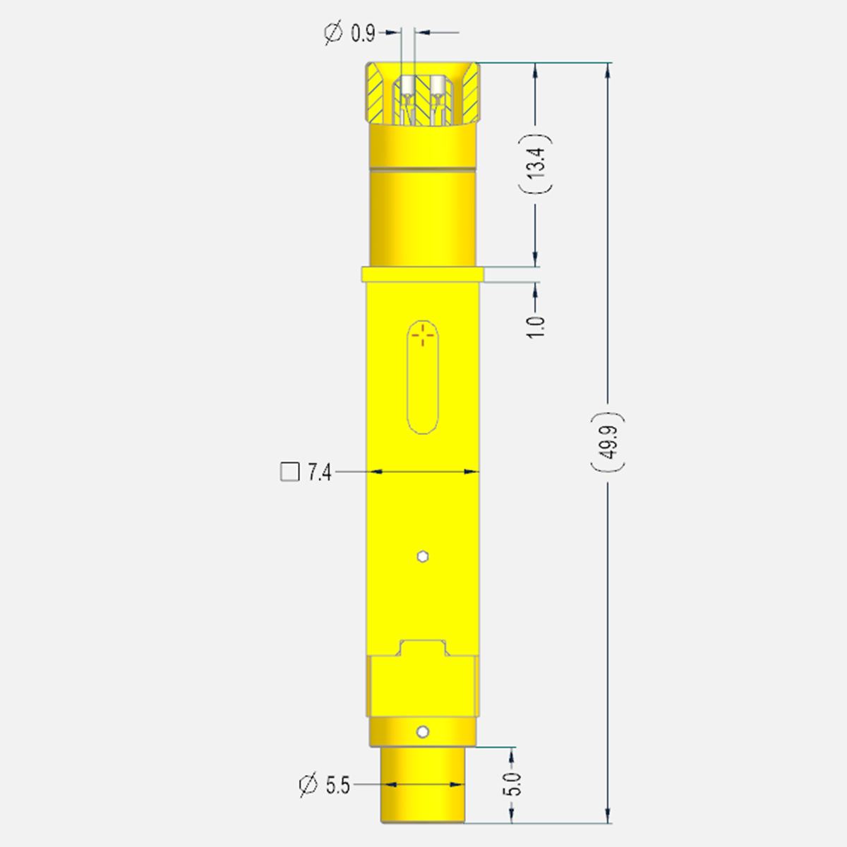 2、探针搭接4芯连接器,具有防转保护结构及位置检测标记;